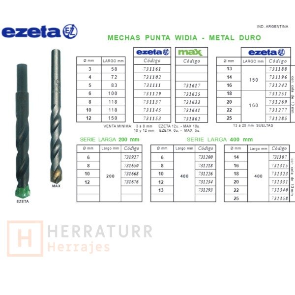 Mechas de Widia para pared, hormigón o ladrillo EZETA